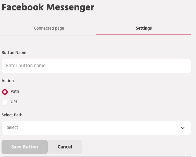 You can choose any path you wish to connect to a particular button on the menu. From the actions select Path and from the Dropdown menu select a path you want to link to that button.