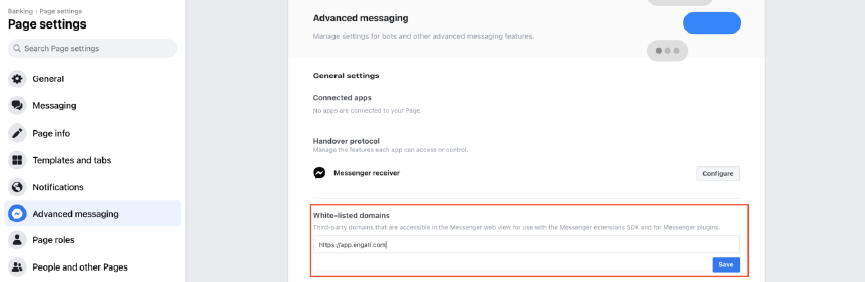 4.Select ‘Advanced Messaging’ and the field with the heading Whitelabel domains