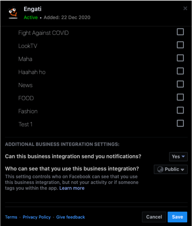 Notes to remember – 1. Make sure all pop-ups are unblocked. 2. Allow all the permissions that are being asked by Default, these permissions are required for the successful deployment of the chatbot. 3. Changing the password and the role of the person who has deployed the bot on the Facebook page will cause the token provided by Facebook to expire, for which you would need to re-authorize the token, please follow the steps below to do so. a) In a new incognito window log in to Elitbuzz Portal. b) Click on Logout and then on Sign-in. c) Log into your account and re-integrate. d) Once done click select the Page and click on Connect. 4. If a particular page is not visible then you would need to allow the permissions for them via the Business Integrations of your Facebook page.