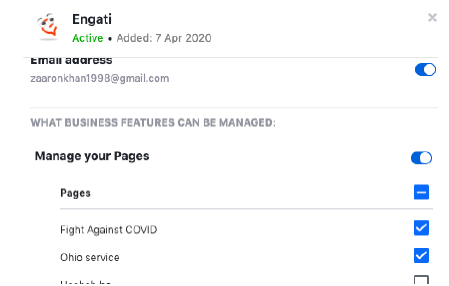 1. Manage your pages. 2. Manage and access your page conversations on messenger. 3. Show a list of the pages you manage.