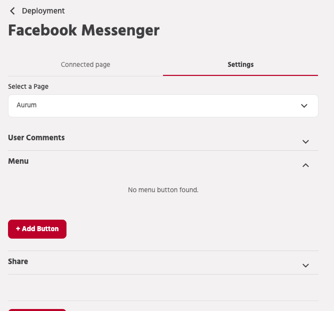 [Note: All the buttons in the menu have to be redirected to a valid path or a valid URL for it to be shown on the messenger.]
