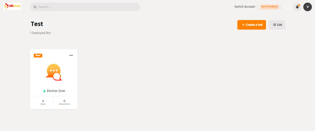 With the new Modern theme, we have revamped the navigation on the web portal. Upon sign-in, you will see the new home page with the list of bots managed under the account. There is also an option to search for a bot on the top left via the search box.