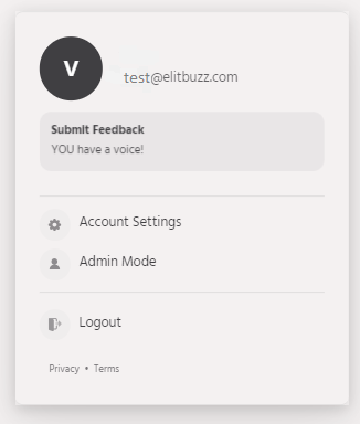 Navigate to the top right and click on the profile icon to view the account level menu. This menu presents the option to view Account settings, Product updates, and Integrations. You can also upgrade to a higher plan by navigating to Account settings.