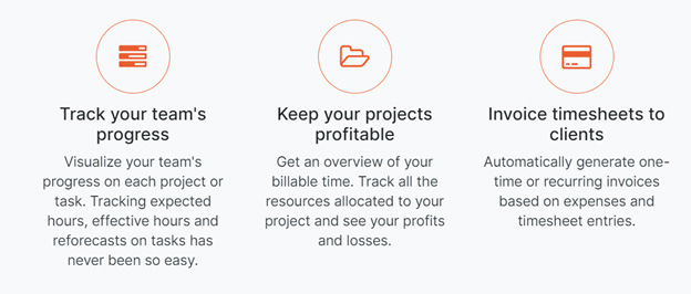 Lightning-fast invoices The time tracker computes your working time, you can add salable products in one click, and your customers’ details are automatically filled out when you create your task.