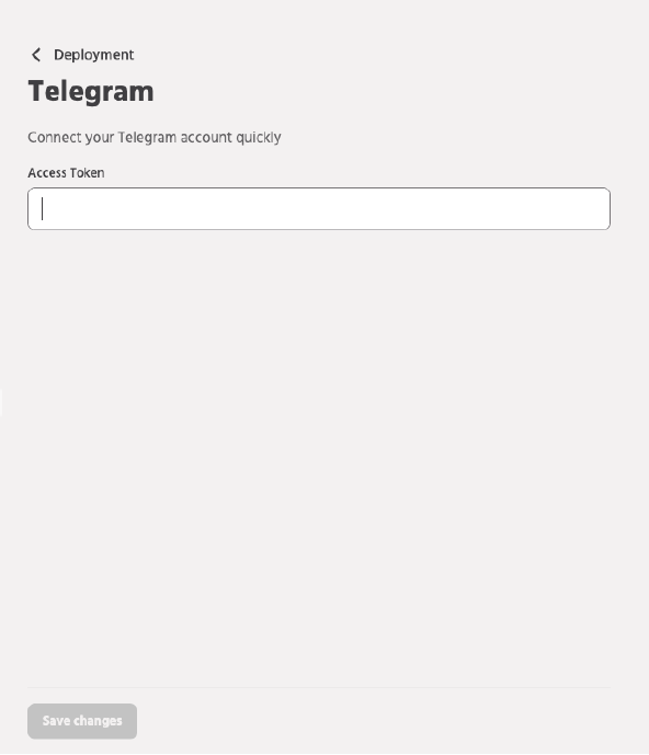 1. You can access Telegram Setup by navigating to Configure>Deployment>Telegram.