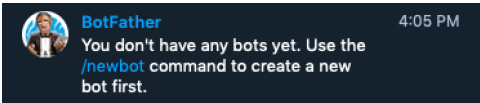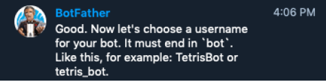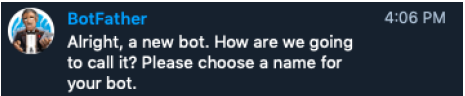 3. You’ll then be asked to enter a name for your bot. Enter a name that you’d like to use.