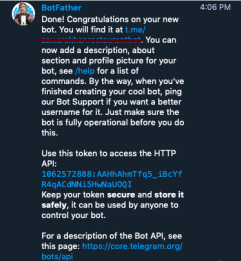 1. Once you’ve done this, you’ll be provided with the access token to your bot. This will appear in your chat with BotFather and it’s a long series of numbers, letters, and symbols.