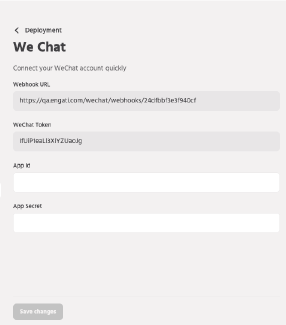 1.1.1 You can access the WeChat setup by navigating to Configure> Deployment> WeChat.