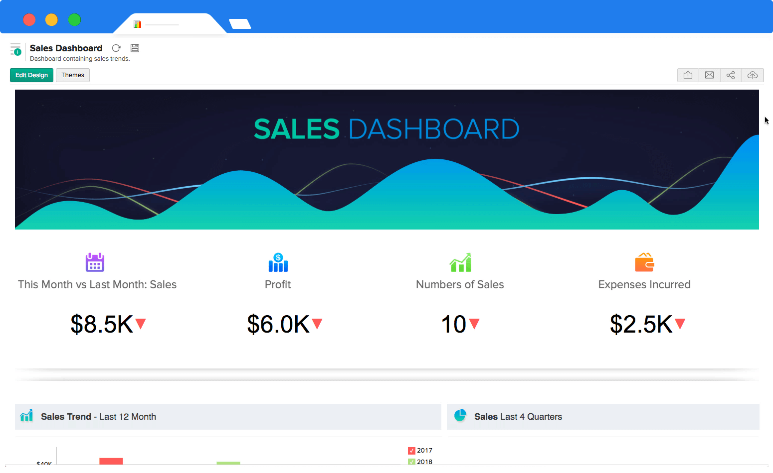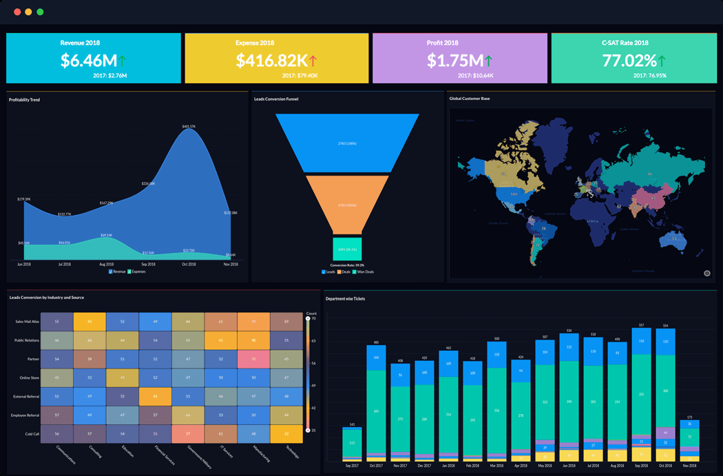 Zoho Analytics is an award-winning self-service BI and analytics platform available in both online and on-premise versions. Zoho Analytics provides an easy to use drag and drop interface for creating custom dashboards in minutes.