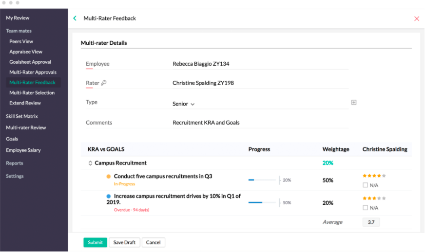 • Get 360 degree feedback and peer reviews