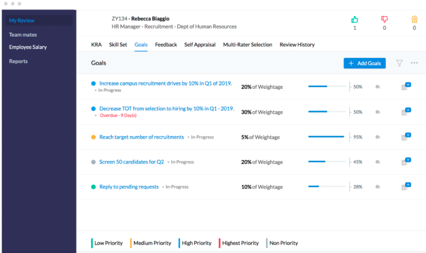 • Tag skill-sets and competencies while setting performance goals